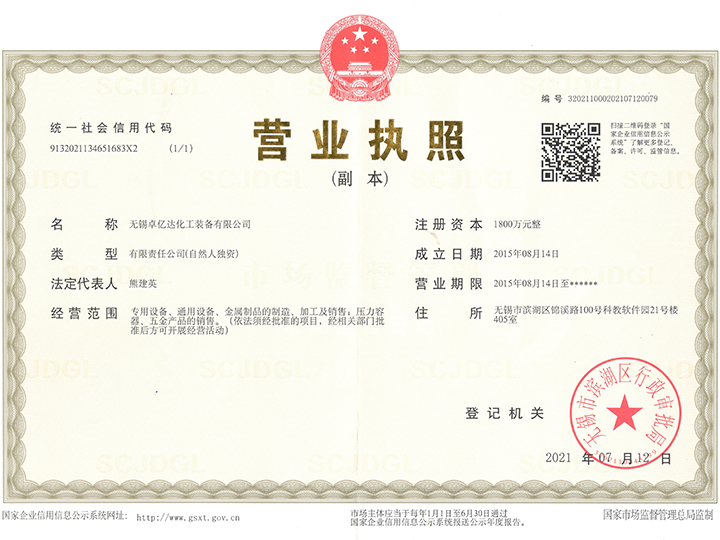 無錫卓億達化工裝備有限公司位于無錫市濱湖區雪浪鎮,生產基地位于無錫宜興市芳橋街道工業集中區。